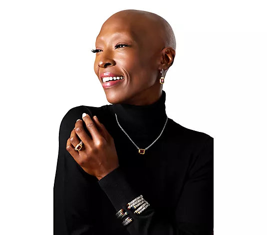 Total gemstone weight is approximate: African purple zircon 1.90 carats; Madeira yellow zircon 2.00 carats; Swiss blue topaz 2.30 carats; Garnet/black pointed zircon 2.50 carats