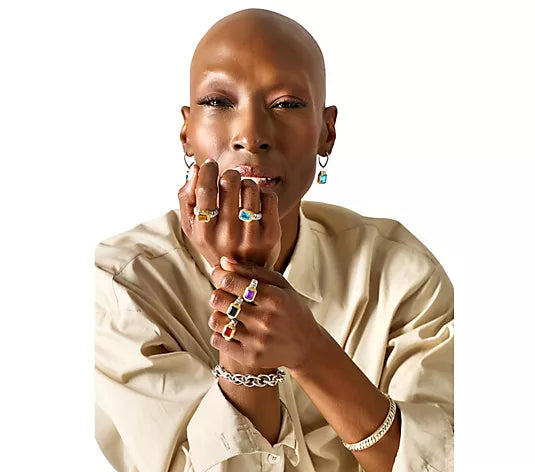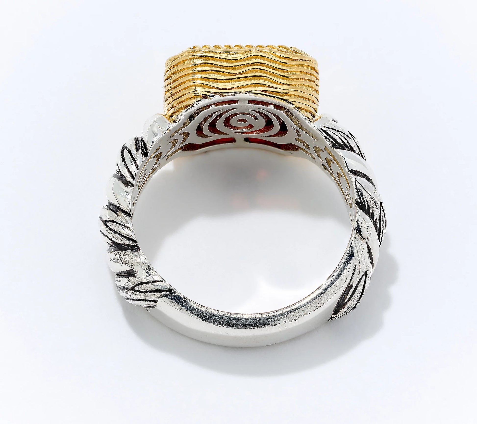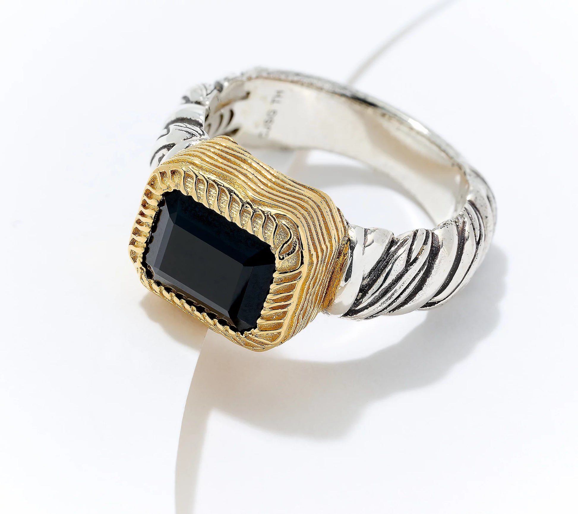 A standout style that attracts plenty of admiring glances and second looks, this two-tone sterling silver ripple ring makes a beautifully sculpted setting for a bold gemstone solitaire. Treat yourself to this fantastic find (you deserve it!).